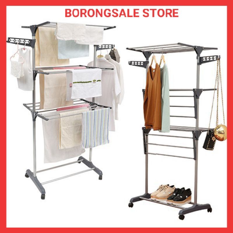 Murah 3 Layer Clothes Hanger Drying Rack Portable Laundry Wheels Ampaian Baju 3 Tingkat Shopee Malaysia